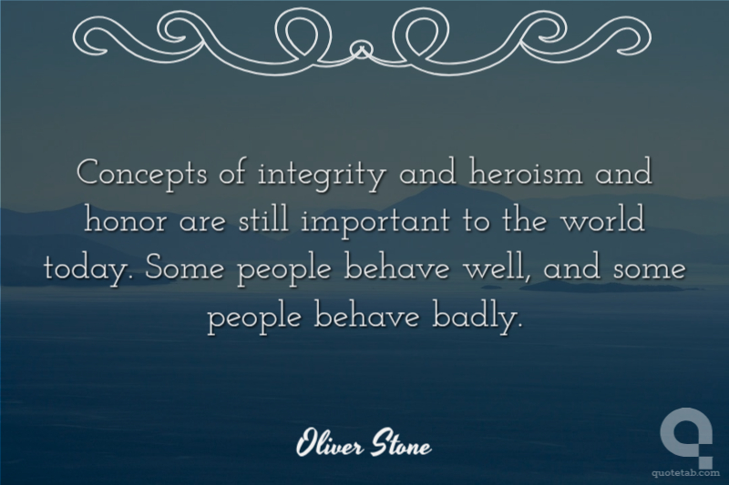 Concepts of integrity and heroism and honor are still important to the world today. Some people behave well, and some people behave badly.
