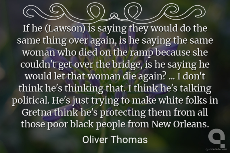 If he (Lawson) is saying they would do the same thing over again, is he saying the same woman who died on the ramp because she couldn't get over the bridge, is he saying he would let that woman die again? ... I don't think he's thinking that. I think he's talking political. He's just trying to make white folks in Gretna think he's protecting them from all those poor black people from New Orleans.