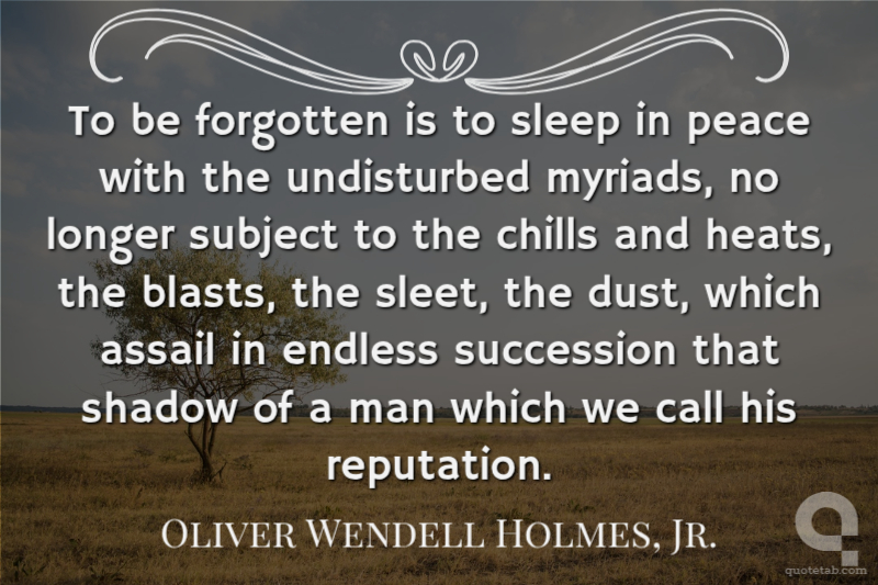 To be forgotten is to sleep in peace with the undisturbed myriads, no longer subject to the chills and heats, the blasts, the sleet, the dust, which assail in endless succession that shadow of a man which we call his reputation.