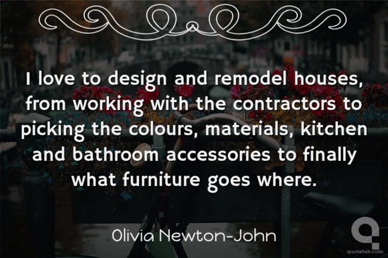 I love to design and remodel houses, from working with the contractors to picking the colours, materials, kitchen and bathroom accessories to finally what furniture goes where.