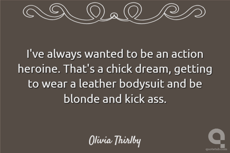 I've always wanted to be an action heroine. That's a chick dream, getting to wear a leather bodysuit and be blonde and kick ass.