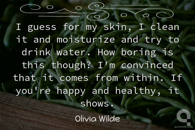 I guess for my skin, I clean it and moisturize and try to drink water. How boring is this though? I'm convinced that it comes from within. If you're happy and healthy, it shows.