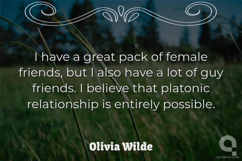 I have a great pack of female friends, but I also have a lot of guy friends. I believe that platonic relationship is entirely possible.