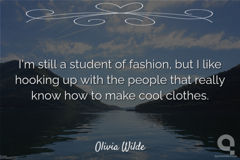 I'm still a student of fashion, but I like hooking up with the people that really know how to make cool clothes.