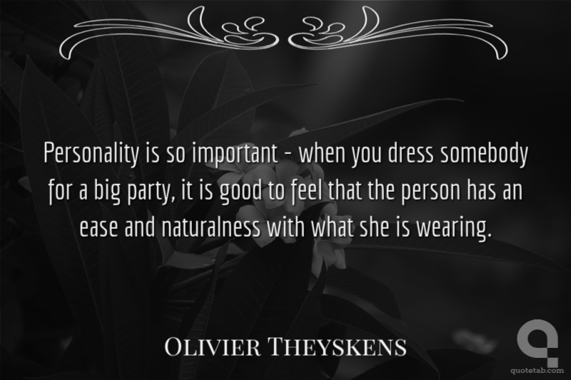 Personality is so important - when you dress somebody for a big party, it is good to feel that the person has an ease and naturalness with what she is wearing.
