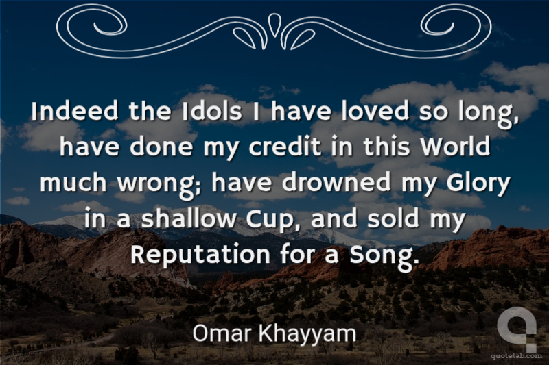 Indeed the Idols I have loved so long, have done my credit in this World much wrong; have drowned my Glory in a shallow Cup, and sold my Reputation for a Song.