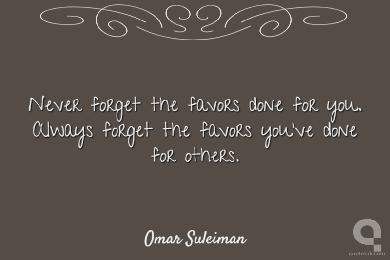 Never forget the favors done for you. Always forget the favors you’ve done for others.