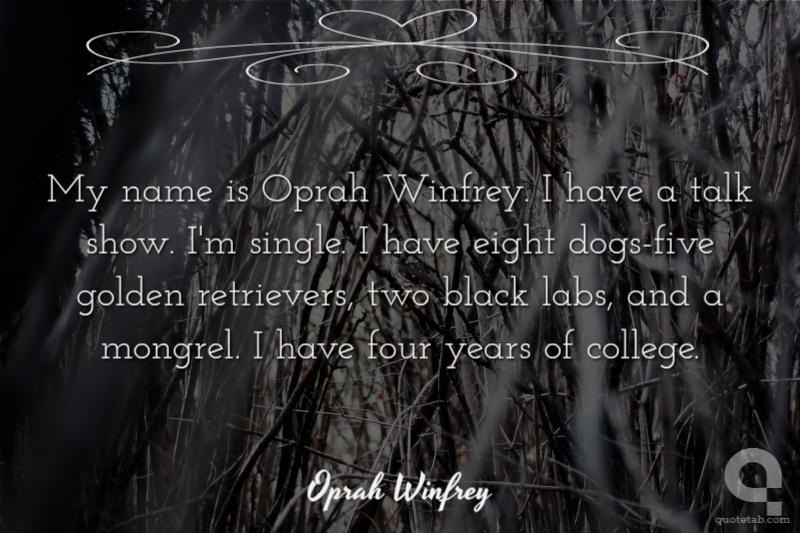My name is Oprah Winfrey. I have a talk show. I'm single. I have eight dogs-five golden retrievers, two black labs, and a mongrel. I have four years of college.