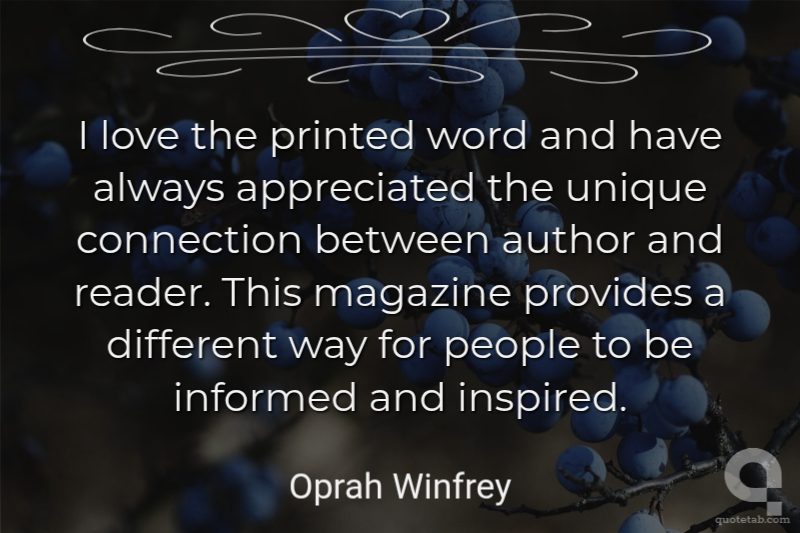 I love the printed word and have always appreciated the unique connection between author and reader. This magazine provides a different way for people to be informed and inspired.