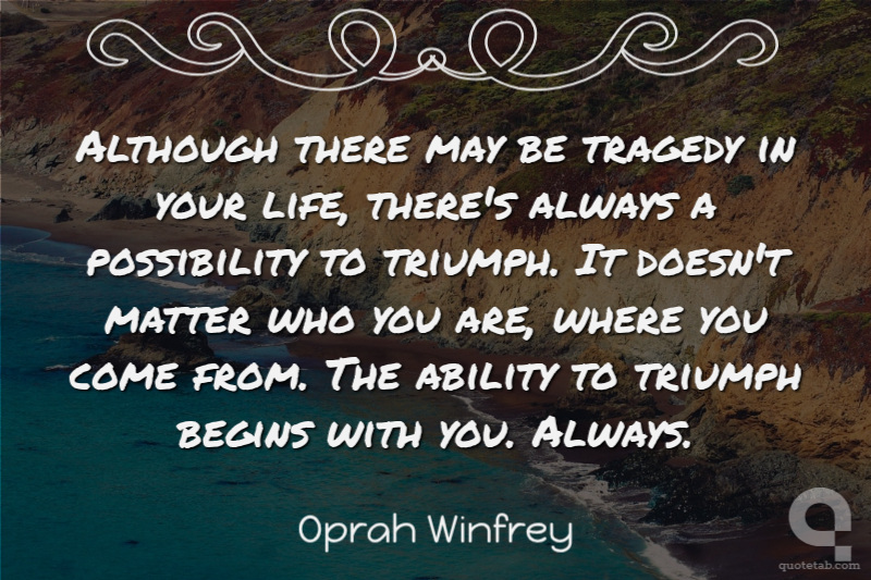Although there may be tragedy in your life, there's always a possibility to triumph. It doesn't matter who you are, where you come from. The ability to triumph begins with you. Always.