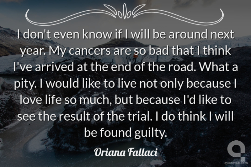 I don't even know if I will be around next year. My cancers are so bad that I think I've arrived at the end of the road. What a pity. I would like to live not only because I love life so much, but because I'd like to see the result of the trial. I do think I will be found guilty.