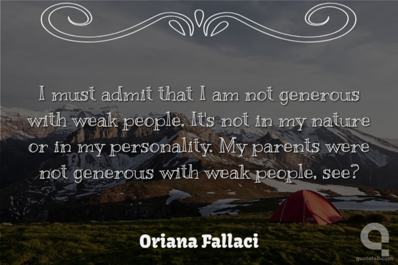 I must admit that I am not generous with weak people. It's not in my nature or in my personality. My parents were not generous with weak people, see?