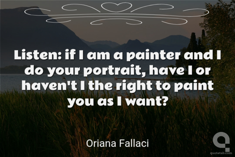 Listen: if I am a painter and I do your portrait, have I or haven't I the right to paint you as I want?