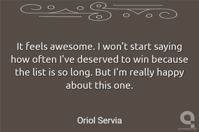 It feels awesome. I won't start saying how often I've deserved to win because the list is so long. But I'm really happy about this one.