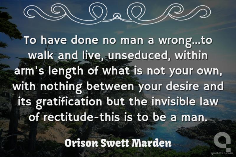 To have done no man a wrong...to walk and live, unseduced, within arm's length of what is not your own, with nothing between your desire and its gratification but the invisible law of rectitude-this is to be a man.