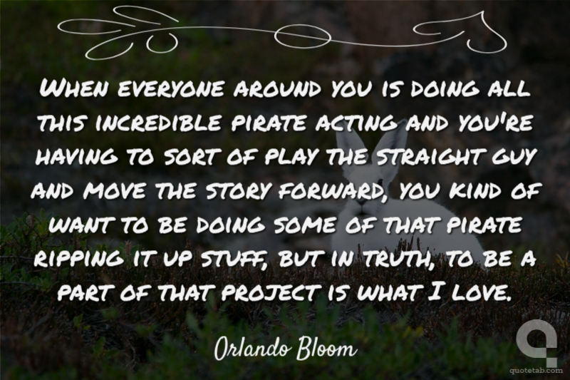 When everyone around you is doing all this incredible pirate acting and you're having to sort of play the straight guy and move the story forward, you kind of want to be doing some of that pirate ripping it up stuff, but in truth, to be a part of that project is what I love.