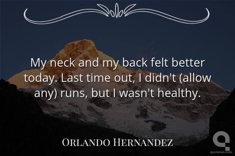 My neck and my back felt better today. Last time out, I didn't (allow any) runs, but I wasn't healthy.