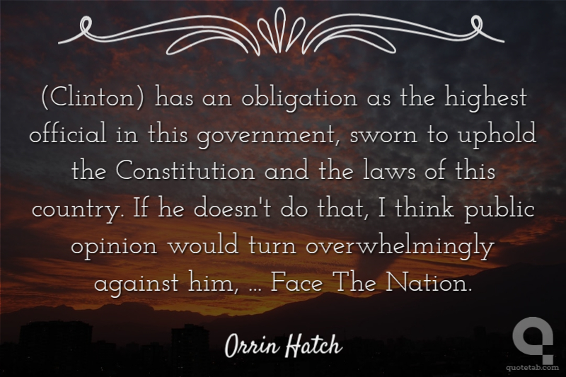 (Clinton) has an obligation as the highest official in this government, sworn to uphold the Constitution and the laws of this country. If he doesn't do that, I think public opinion would turn overwhelmingly against him, ... Face The Nation.