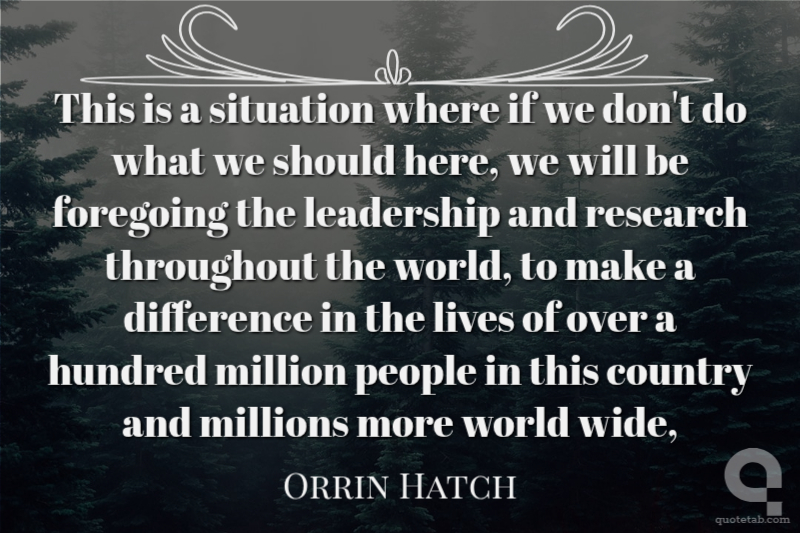 This is a situation where if we don't do what we should here, we will be foregoing the leadership and research throughout the world, to make a difference in the lives of over a hundred million people in this country and millions more world wide,