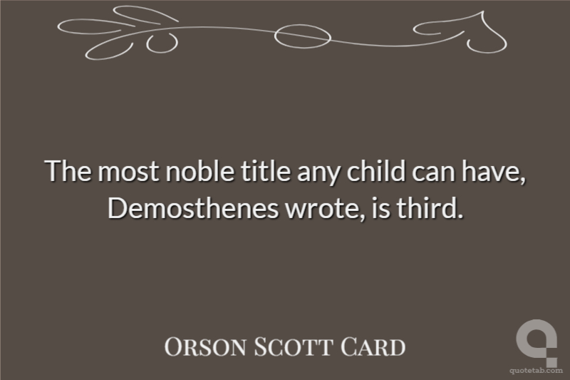 That night Demosthenes published a scathing denunciation of the population limitation laws. People should be allowed to have as many children as they like, and the surplus population should be sent to other worlds, to spread mankind so far across the galaxy that no disaster, no invasion could ever threaten the human race with annihilation. "The most noble title any child can have," Demosthenes wrote, "is Third.