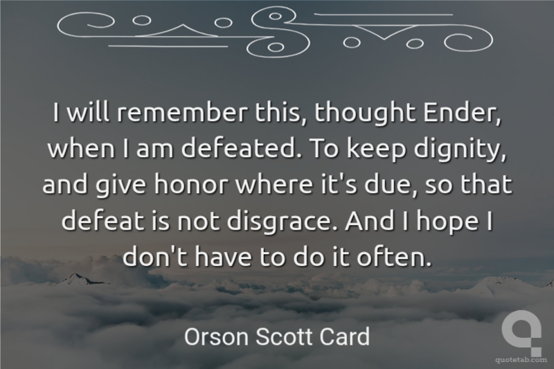 I will remember this, thought Ender, when I am defeated. To keep dignity, and give honor where it's due, so that defeat is not disgrace. And I hope I don't have to do it often.