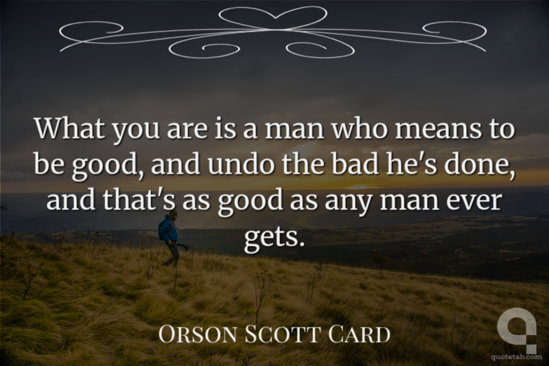 What you are is a man who means to be good, and undo the bad he's done, and that's as good as any man ever gets.