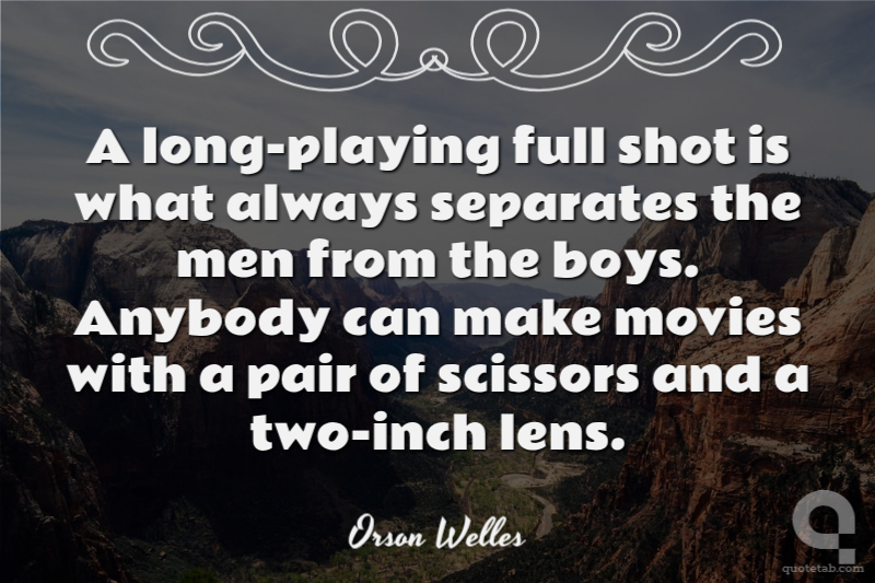 A long-playing full shot is what always separates the men from the boys. Anybody can make movies with a pair of scissors and a two-inch lens.