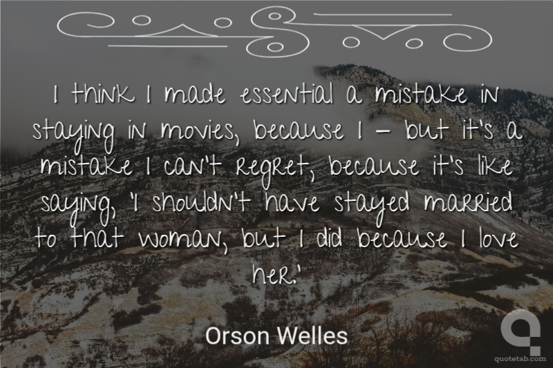 I think I made essential a mistake in staying in movies, because I - but it's a mistake I can't regret, because it's like saying, 'I shouldn't have stayed married to that woman, but I did because I love her.'