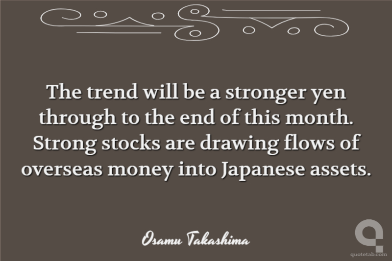 The trend will be a stronger yen through to the end of this month. Strong stocks are drawing flows of overseas money into Japanese assets.