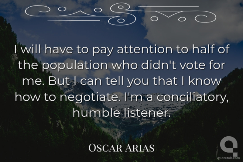I will have to pay attention to half of the population who didn't vote for me. But I can tell you that I know how to negotiate. I'm a conciliatory, humble listener.