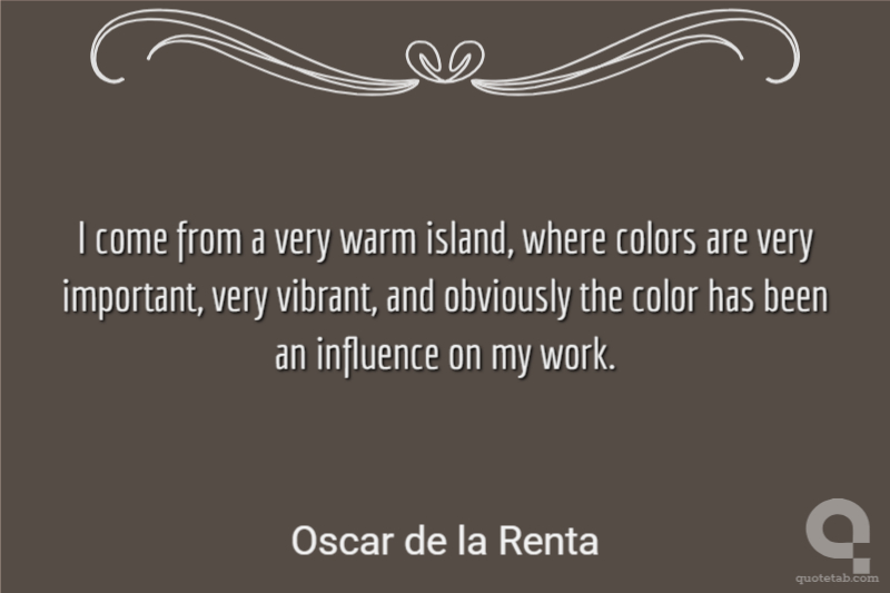 I come from a very warm island, where colors are very important, very vibrant, and obviously the color has been an influence on my work.
