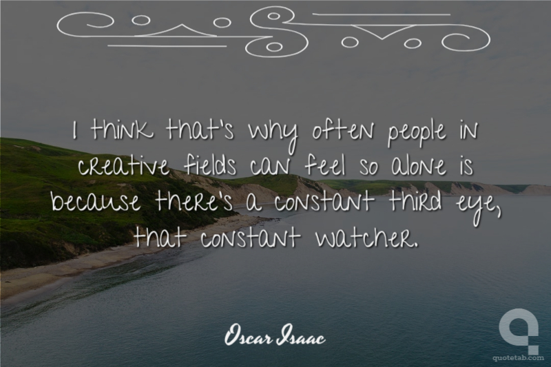 I think that's why often people in creative fields can feel so alone is because there's a constant third eye, that constant watcher.