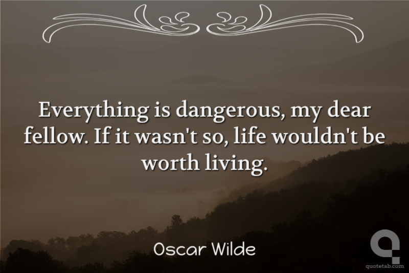 Everything is dangerous, my dear fellow. If it wasn't so, life wouldn't be worth living.