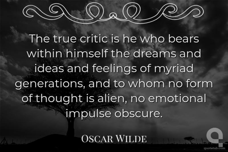 The true critic is he who bears within himself the dreams and ideas and feelings of myriad generations, and to whom no form of thought is alien, no emotional impulse obscure.