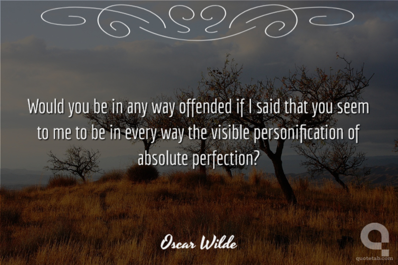 Would you be in any way offended if I said that you seem to me to be in every way the visible personification of absolute perfection?
