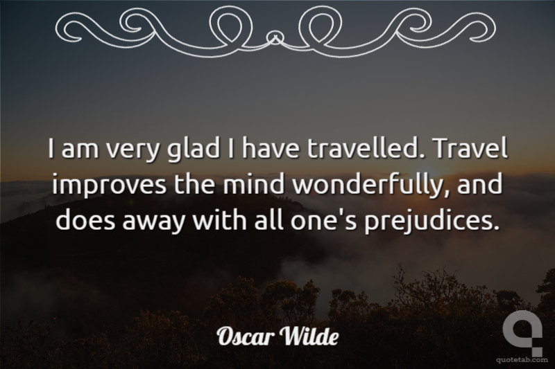 I am very glad I have travelled. Travel improves the mind wonderfully, and does away with all one's prejudices.