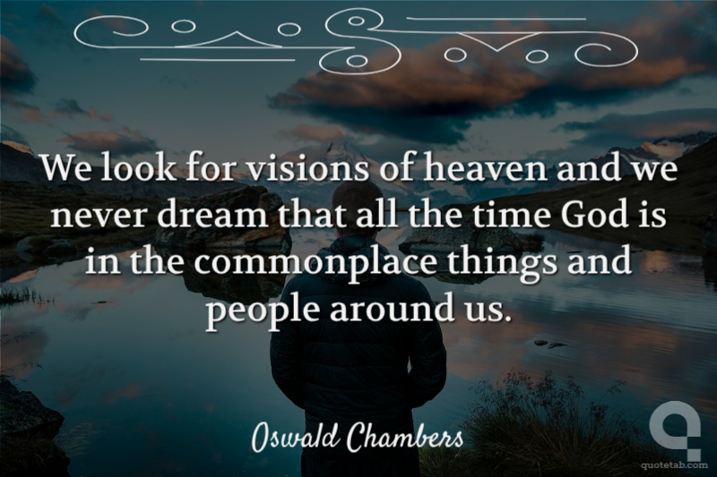We look for visions of heaven and we never dream that all the time God is in the commonplace things and people around us.