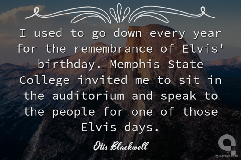 I used to go down every year for the remembrance of Elvis' birthday. Memphis State College invited me to sit in the auditorium and speak to the people for one of those Elvis days.