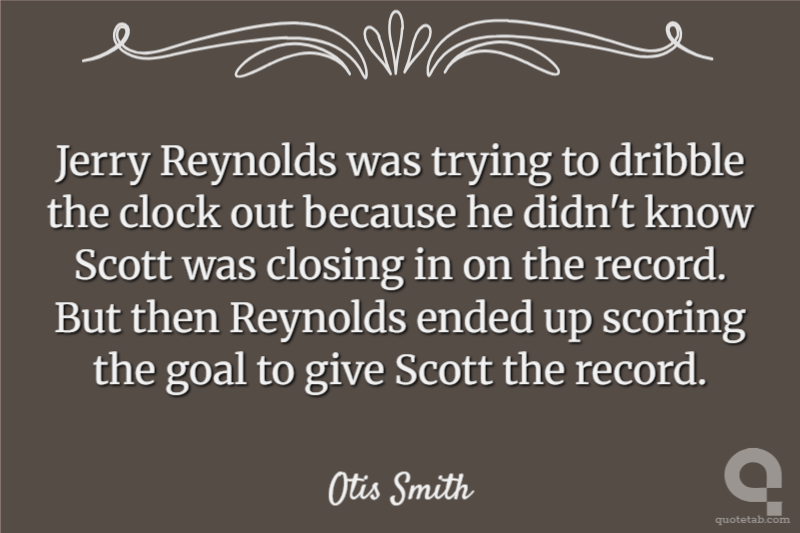 Jerry Reynolds was trying to dribble the clock out because he didn't know Scott was closing in on the record. But then Reynolds ended up scoring the goal to give Scott the record.