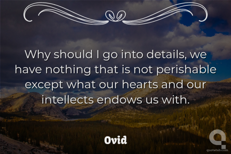 Why should I go into details, we have nothing that is not perishable except what our hearts and our intellects endows us with.