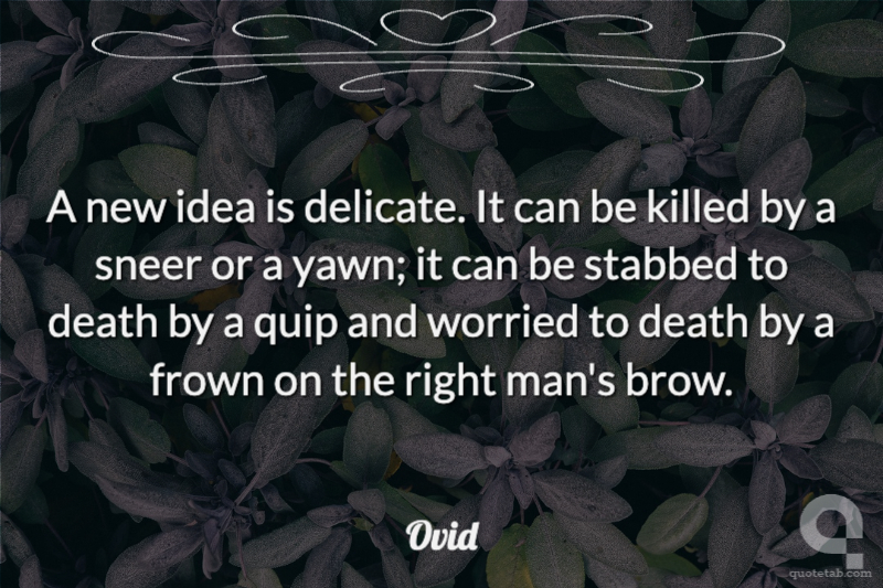 A new idea is delicate. It can be killed by a sneer or a yawn; it can be stabbed to death by a quip and worried to death by a frown on the right man's brow.