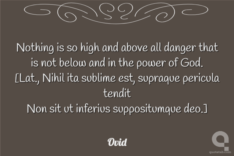 Nothing is so high and above all danger that is not below and in the power of God. [Lat., Nihil ita sublime est, supraque pericula tendit Non sit ut inferius suppositumque deo.]