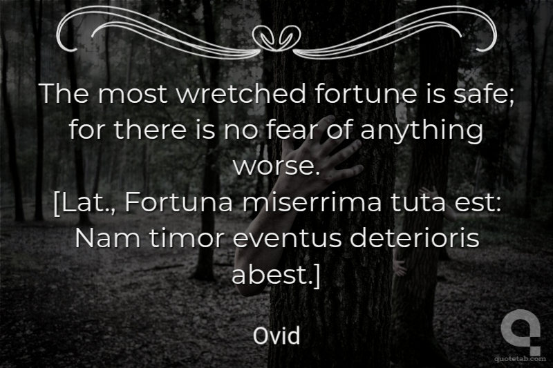 The most wretched fortune is safe; for there is no fear of anything worse. [Lat., Fortuna miserrima tuta est: Nam timor eventus deterioris abest.]