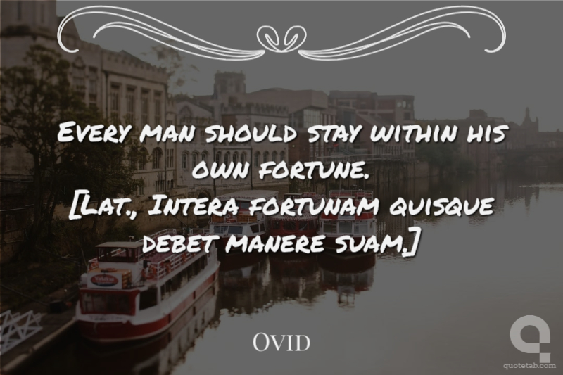 Every man should stay within his own fortune. [Lat., Intera fortunam quisque debet manere suam.]