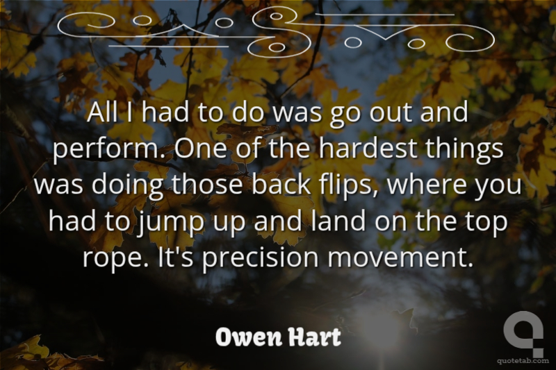 All I had to do was go out and perform. One of the hardest things was doing those back flips, where you had to jump up and land on the top rope. It's precision movement.