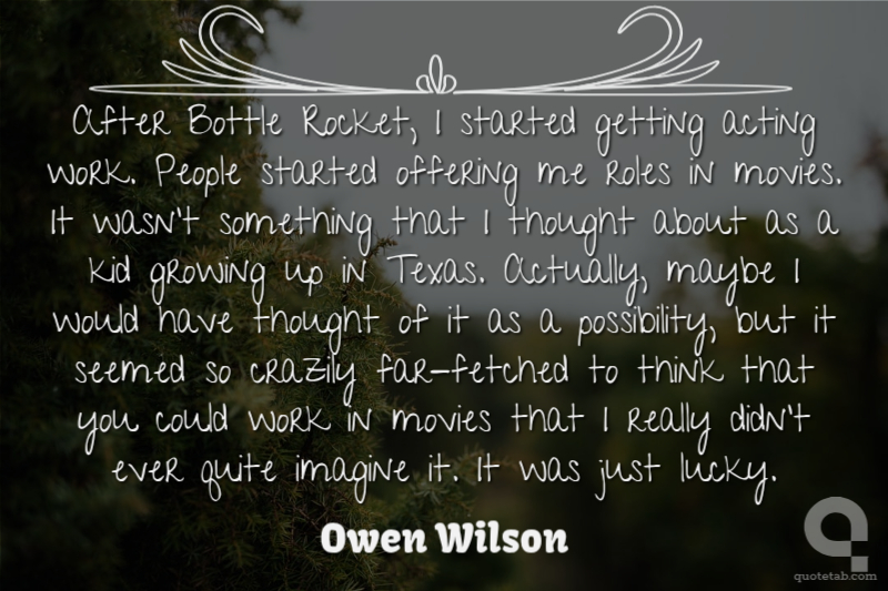 After Bottle Rocket, I started getting acting work. People started offering me roles in movies. It wasn't something that I thought about as a kid growing up in Texas. Actually, maybe I would have thought of it as a possibility, but it seemed so crazily far-fetched to think that you could work in movies that I really didn't ever quite imagine it. It was just lucky.