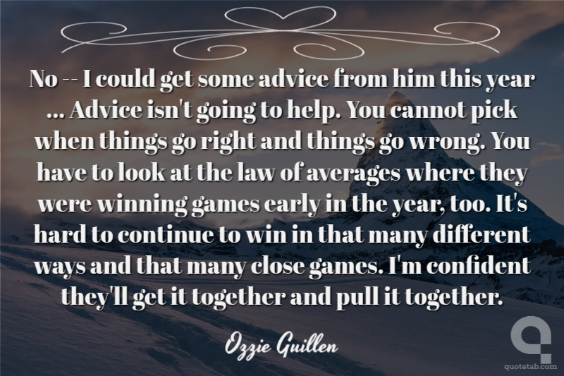 No -- I could get some advice from him this year ... Advice isn't going to help. You cannot pick when things go right and things go wrong. You have to look at the law of averages where they were winning games early in the year, too. It's hard to continue to win in that many different ways and that many close games. I'm confident they'll get it together and pull it together.