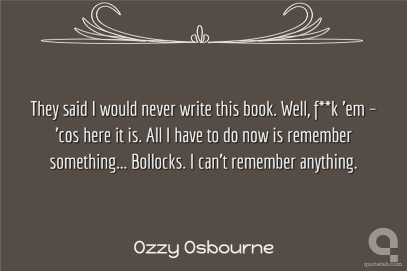 They said I would never write this book. Well, f**k ’em – ’cos here it is. All I have to do now is remember something... Bollocks. I can’t remember anything.