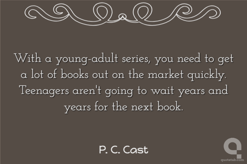 With a young-adult series, you need to get a lot of books out on the market quickly. Teenagers aren't going to wait years and years for the next book.