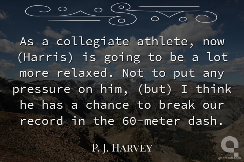 As a collegiate athlete, now (Harris) is going to be a lot more relaxed. Not to put any pressure on him, (but) I think he has a chance to break our record in the 60-meter dash.